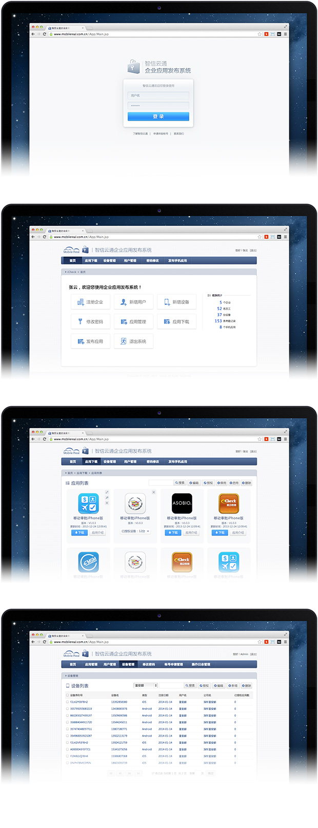 案例简介:该系统解决了企业向客户发布移动应用产品时存在的安装过程难、版本管控难、设备授权难等问题,客户通过本系统的自主申请平台向企业提交产品体验需求,企业审核通过后,授权其对应产品体验权限,以方便用户通过该系统平台下载并安装使用已授权的产品,既方便了客户体验产品,同时也为企业管理客户所体验的产品及客户设备提供了极大便利。